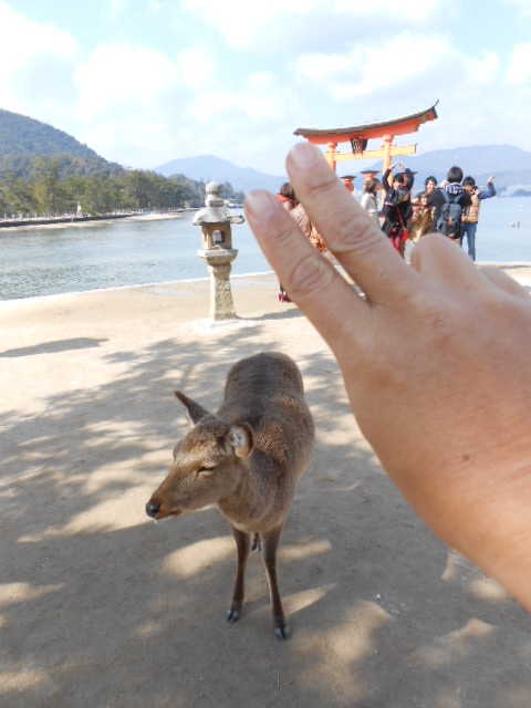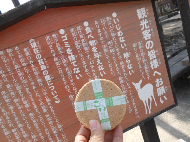 はい、ソコで「宮島の鹿に奈良の鹿せんべいを与えてみる実験」!