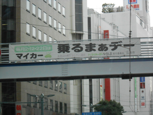 あと、歩道橋にあったスローガン。…「マイカー乗るまぁデー」?