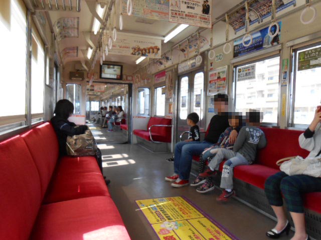隣の車両まで見渡せる広い貫通幌は、昭和の私鉄電車特有の