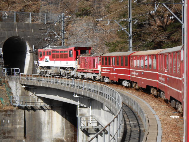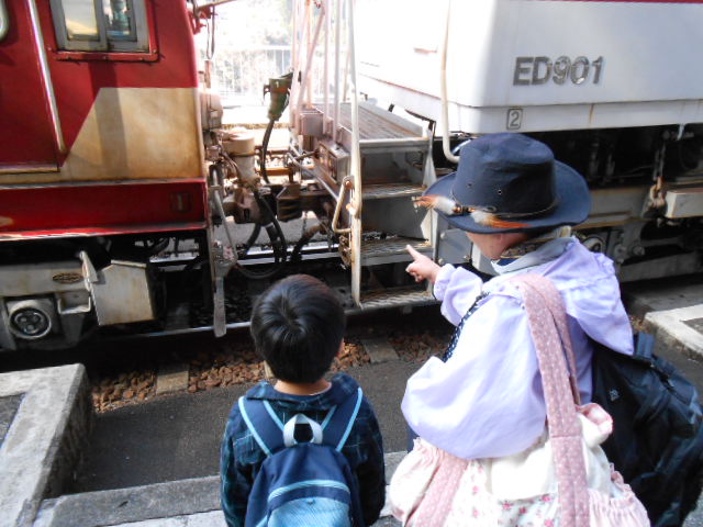 …小さな赤い列車を、一回り大きな