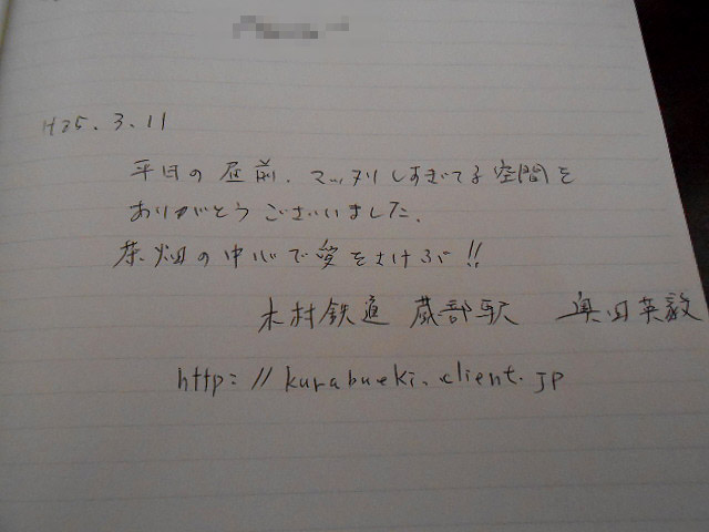 ココにも「落書きノート」的なモノがあったので、一筆書いてきました。