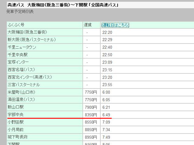 一応は検討したんですが、大阪から宇部方面へ夜行バスで行こうと