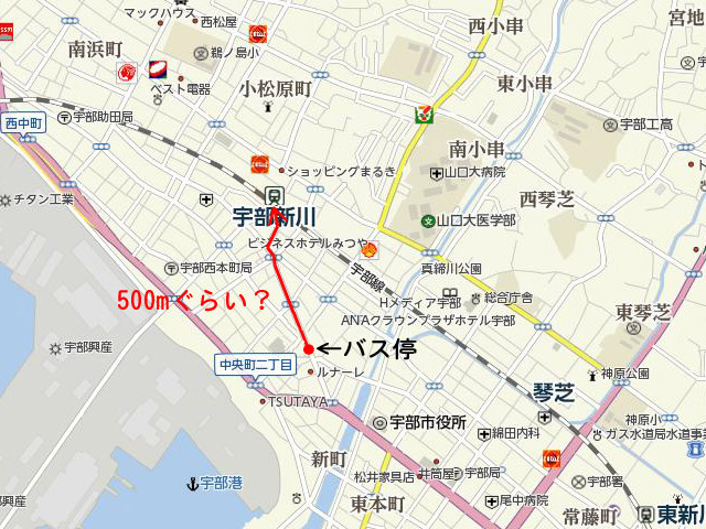 …バスが着くのが「宇部中央」というバス停で、駅前じゃナイのです。