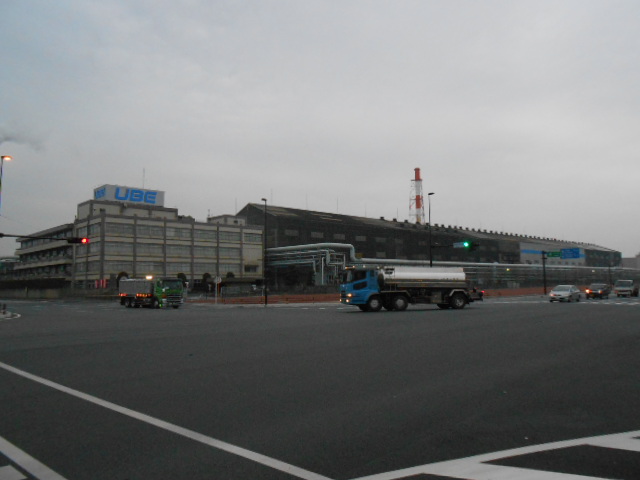 朝起きて外へ出たら、ホテルの真ん前が大手化学会社の本社工場!