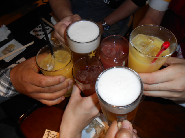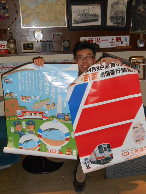 乾杯した所へ、三陸鉄道帰りの