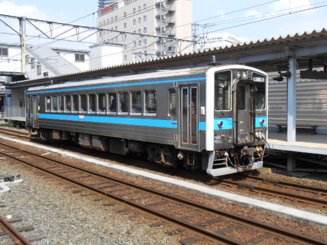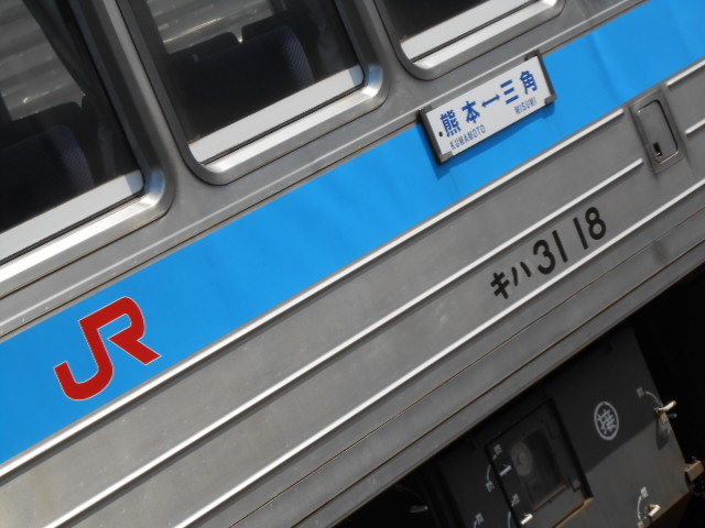 向かいのホームに入ってた三角線の気動車。九州では、まだ