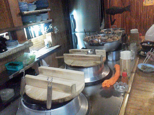 カウンターの大きな釜で作られる、おでんとうどんがメイン。