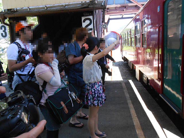 みんなで列車を「お見送り」してると、乗り遅れた親子さんが登場!