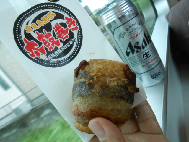 では、おやつタイム。…九州にありがちな「肉巻きおにぎり」です。