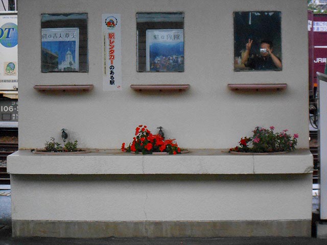 で、何故かホームのベンチに「ヒメダカ」。…駅長とかではナイようです。