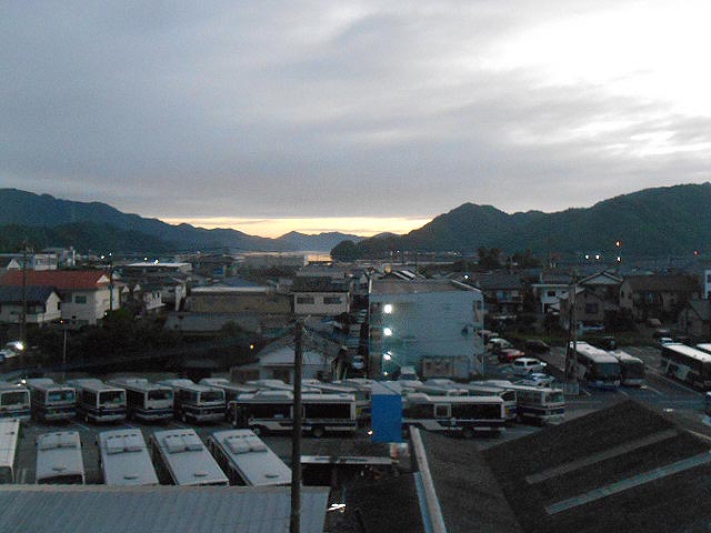 泊まったホテルの窓からは、海とバスの車庫が見えました。