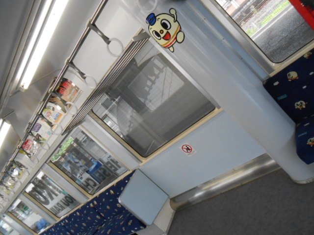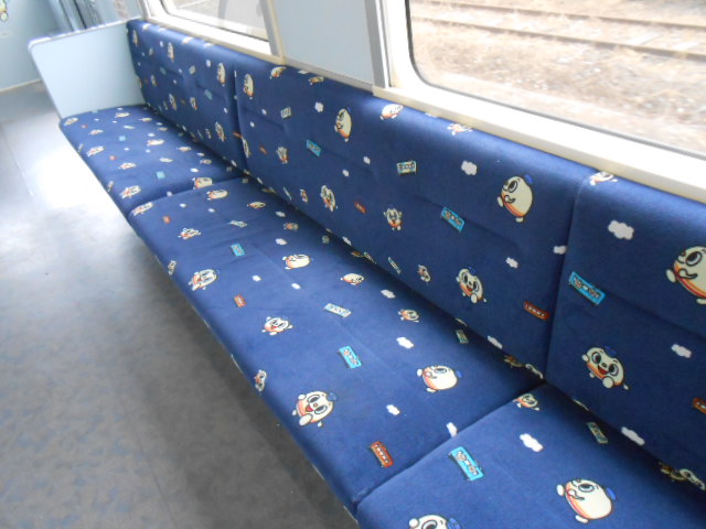 車内もこんな感じです。モケットにプリント生地が使われてるのは