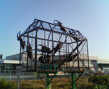以前に通勤途中で見つけた 「巨大な虫かご」 (どっかの看板屋のネタ?) ですが… 夏が過ぎて… 増えてるし! しかもカゴの外側にもウジャウジャと… ヒソカにこいつらが怖い私…。