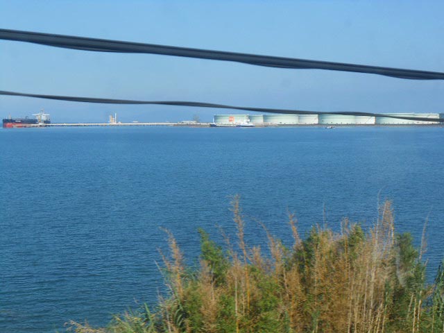 …車窓からも、巨大な石油タンクと接岸してるタンカーが見えました。