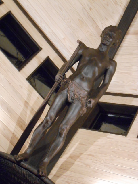 今年の春に新しく完成したという駅舎には、山幸彦の像がありました。