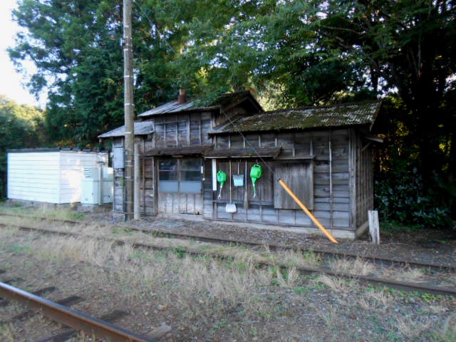 小湊鉄道と「通し」で表記されてる駅名板と、味のある謎の物置…。