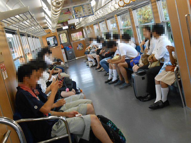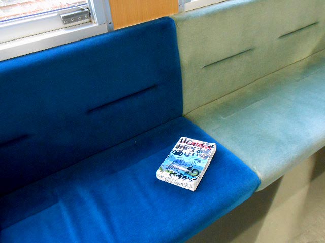 座席はオールロングシートですが、モケットが青&シルバー(優先席)