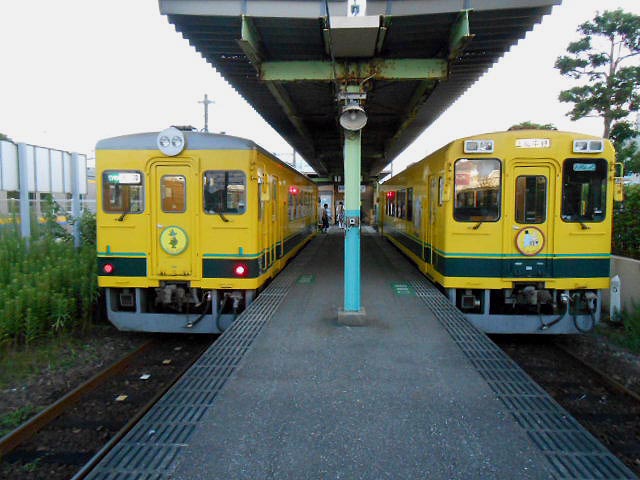 ココで列車交換。対向車は、数少なくなった富士重工製ですね。