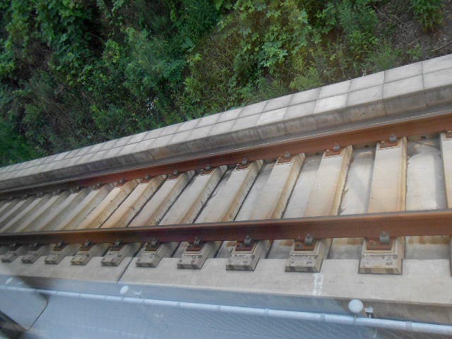 空港に向かう線路は、一見すると複線区間ですが、隣のゲージが