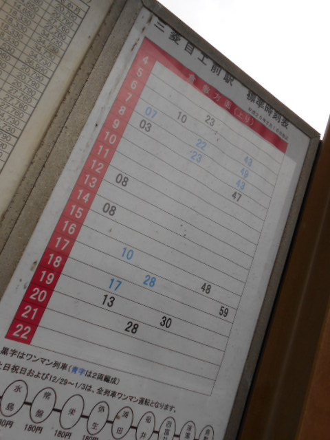 ダイヤで、昼間は閑散としてるのが分かります。