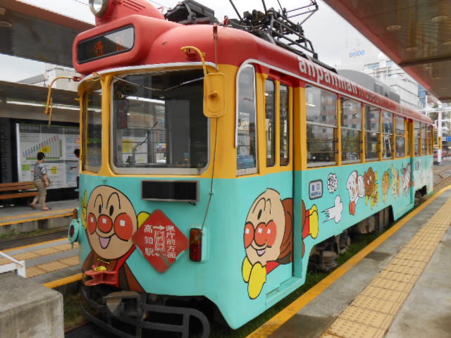 そしてアンパンマンのラッピング電車で、再びはりまや橋へ…。