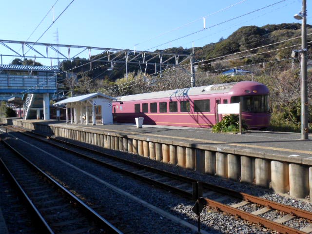 内房線の特急「さざなみ」に相応しい穏やかな小春日和の海…