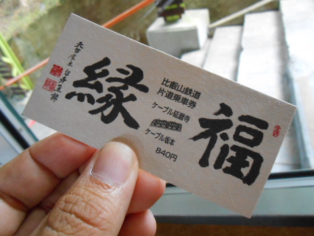 切符の題字は天台座主…延暦寺の一番偉いお坊さんの筆によるものです。