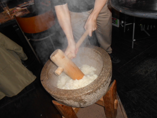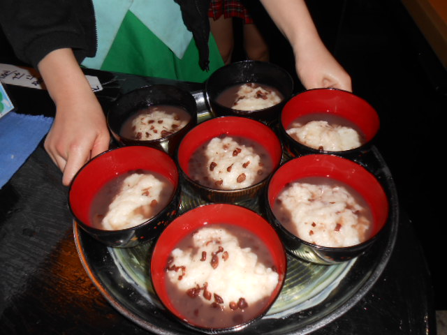 松井さんを中心として、みんなでついた餅が善哉として振舞われ(有料)、