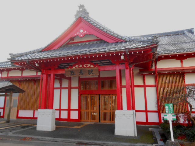 神社建築を模してあるんでしょう。本数の少ない駅なのに豪華な造り
