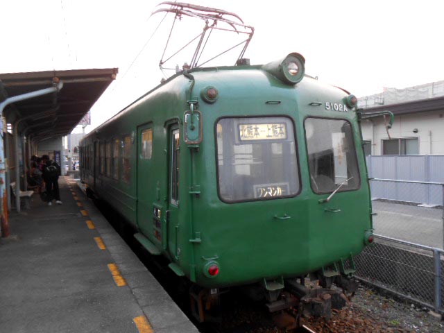 そんな青ガエルで、夕闇迫る熊本電鉄の旅に出発です。