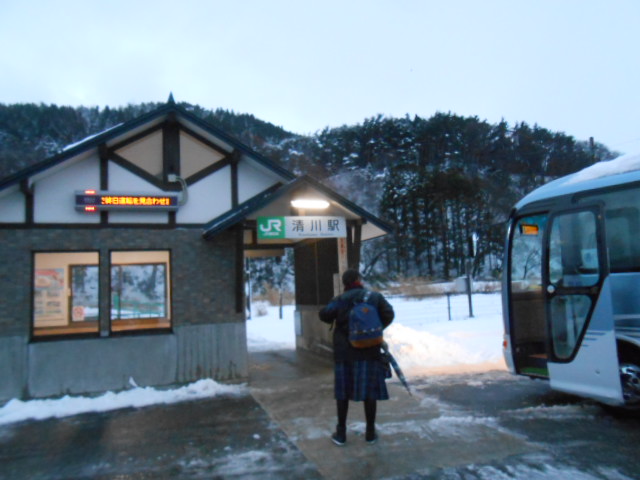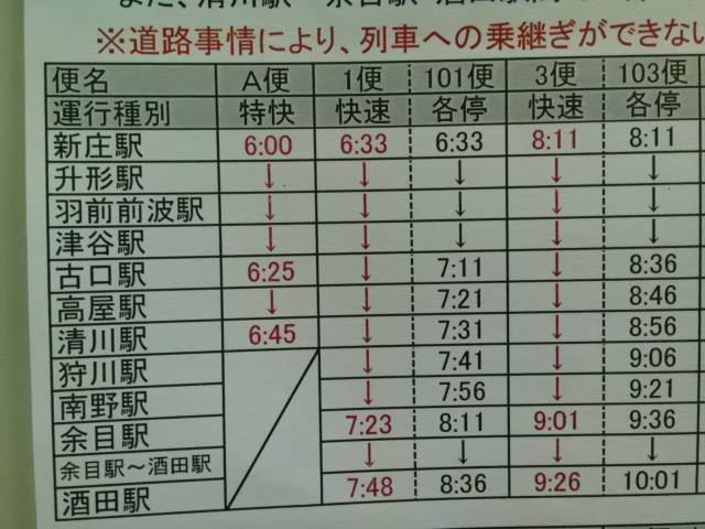 新庄駅で2日目の検印を貰い、代行バスに乗車します。