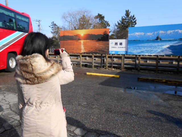 雨晴海岸でした。…ではバスに戻って、次の目的地に向かいます。