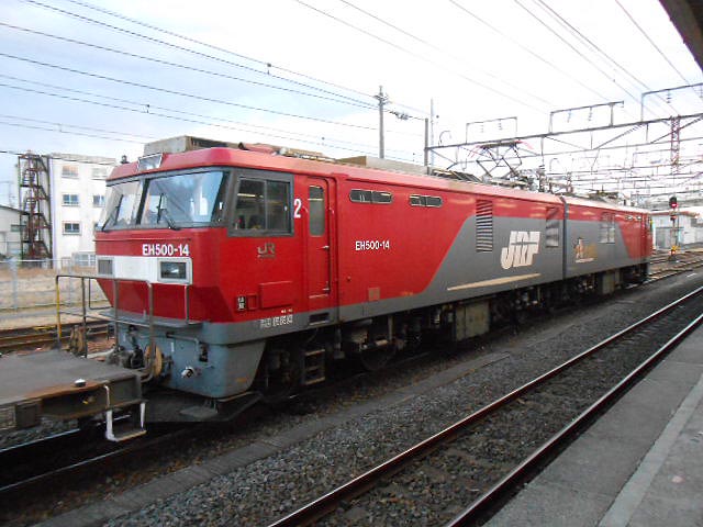 上り列車はココまでがEH500。コレは交直両用(赤又はピンク)ですが、