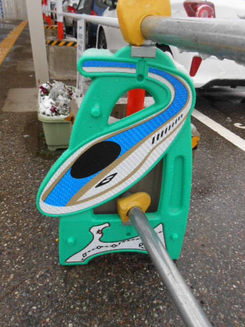 その工事現場にあるガード柵が何とE7系!