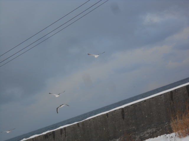 …海には凍えそうなカモメ?が飛んでます。演歌な景色ですねぇ。
