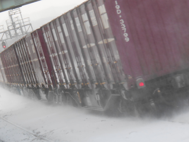 …雪煙を上げて爆走するコキの一群は、なかなかの迫力です。