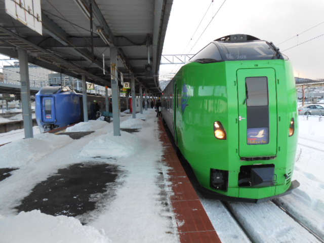 帰りはもぅ特急ワープです。北海道の気動車特急は何気に初体験。