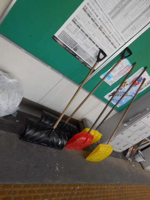 雪国の駅らしく、構内には除雪セットが