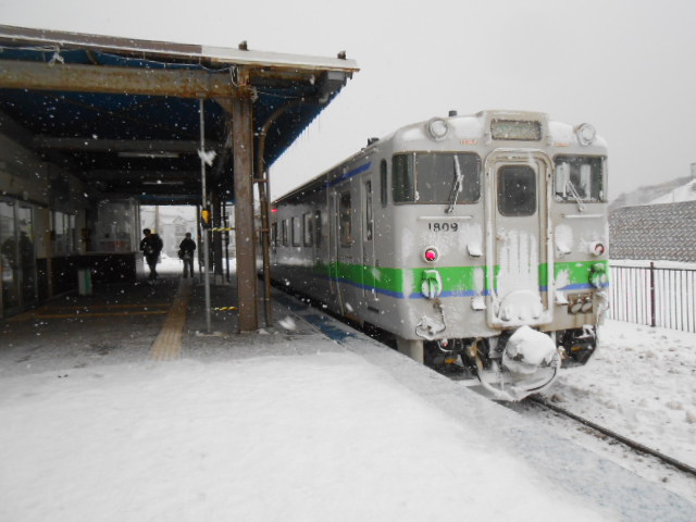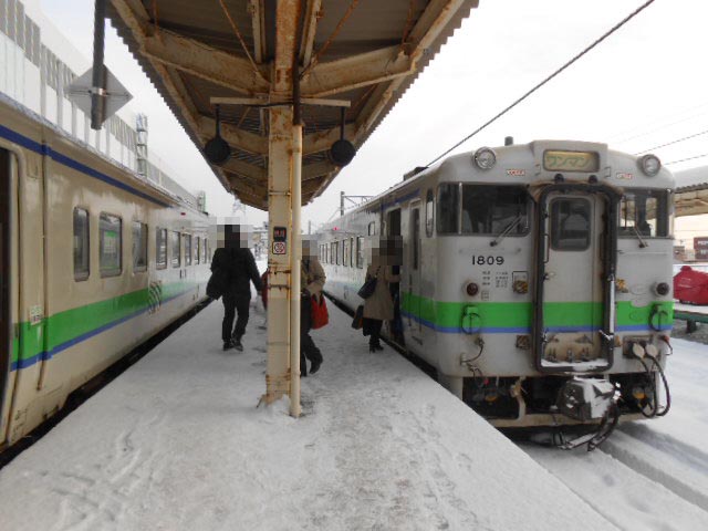 木古内から、接続の特急からすぐの連絡で江差駅が出ます。