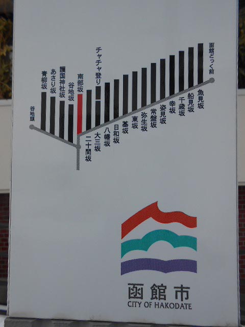 その一つ、南部坂を登っていくと、函館山へ通じるロープウェイの