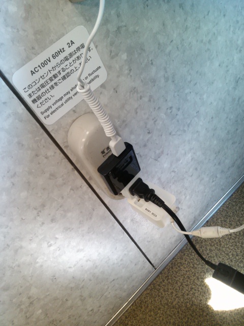三つ又プラグを持ち歩いております。…コレね、あるとナイとで大違い!