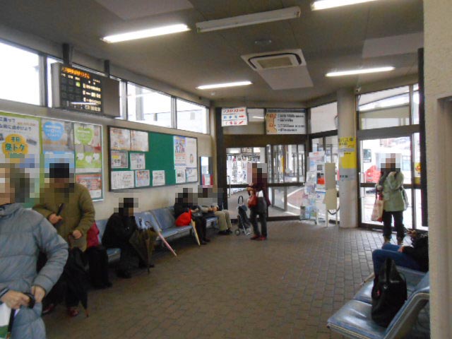 上の駅舎の、内部の画像がコレです。バス乗り場と電車の駅が