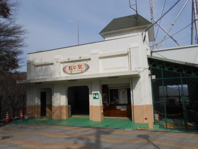 ケーブルカーですから、すぐに山上の「虹の駅」