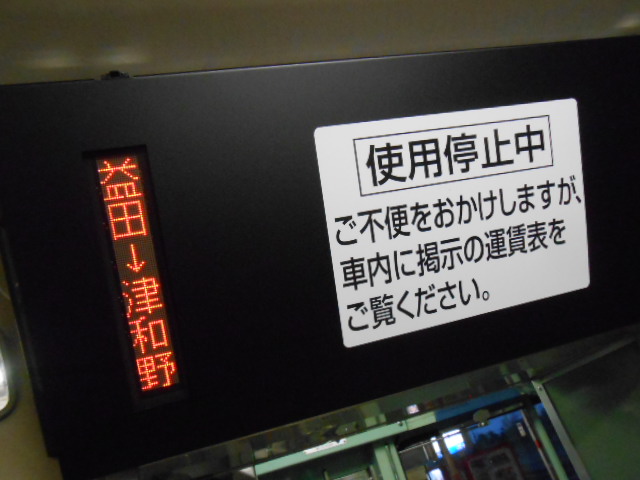 列車はワンマン運転ですが、料金の表示機が何故かフタしてあって