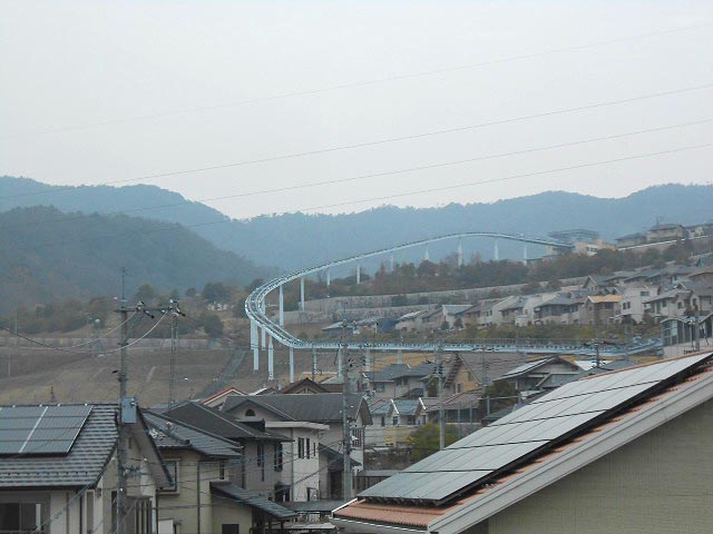 住宅街の上へ通じてるのが見えますよね。