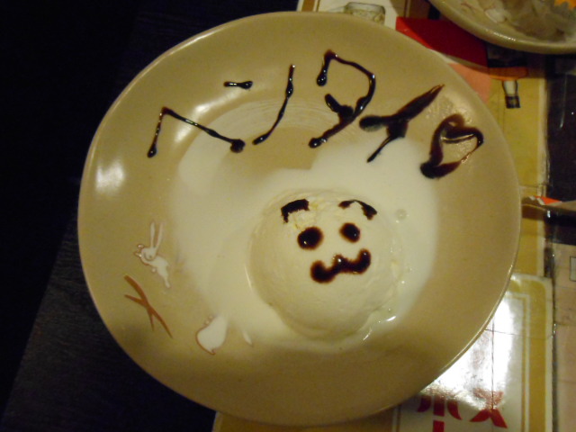 …で、デザートのアイスクリームがこんな状態。確か「変な事を書いて」