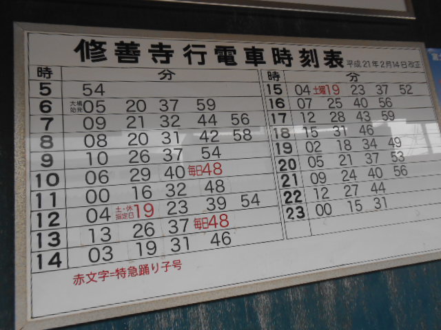 何故かパターンダイヤではナイのですが、概ね1時間に4本程度の