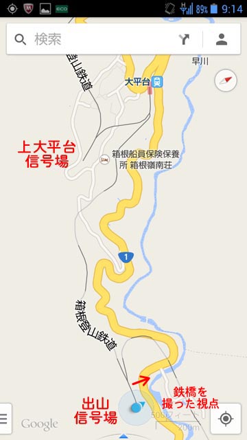 そしてココから先の線路と、さっきの鉄橋を地図で