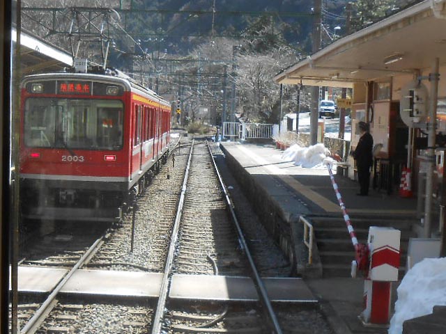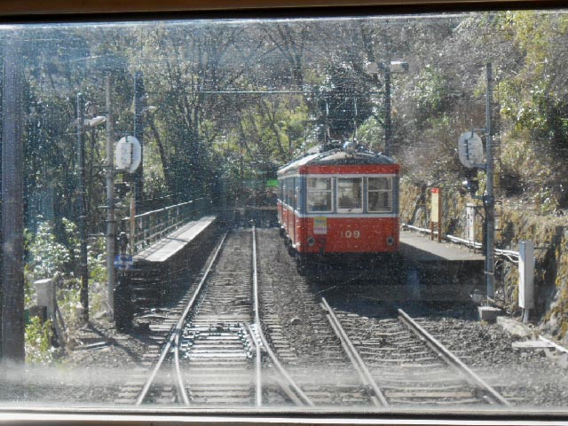 上大平台信号場で3度目のスイッチバック、小涌谷で上下交換です。