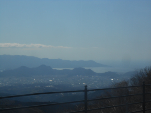 途中、山の尾根に上がった所で海が見えました。沼津湾ですね。